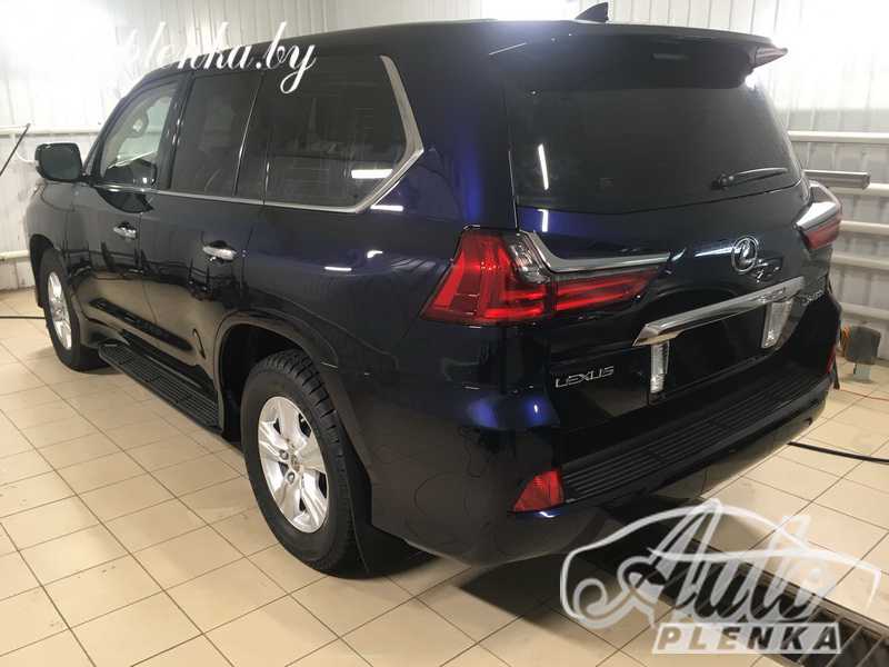 Антигравийная защита для Lexus LXвключает в себя: капот и передние крылья цельно, оптика, бампер, решетка радиатора, стойки лобового стекла, передняя часть крыши, зеркала, внутренние пороги и набор подручек.